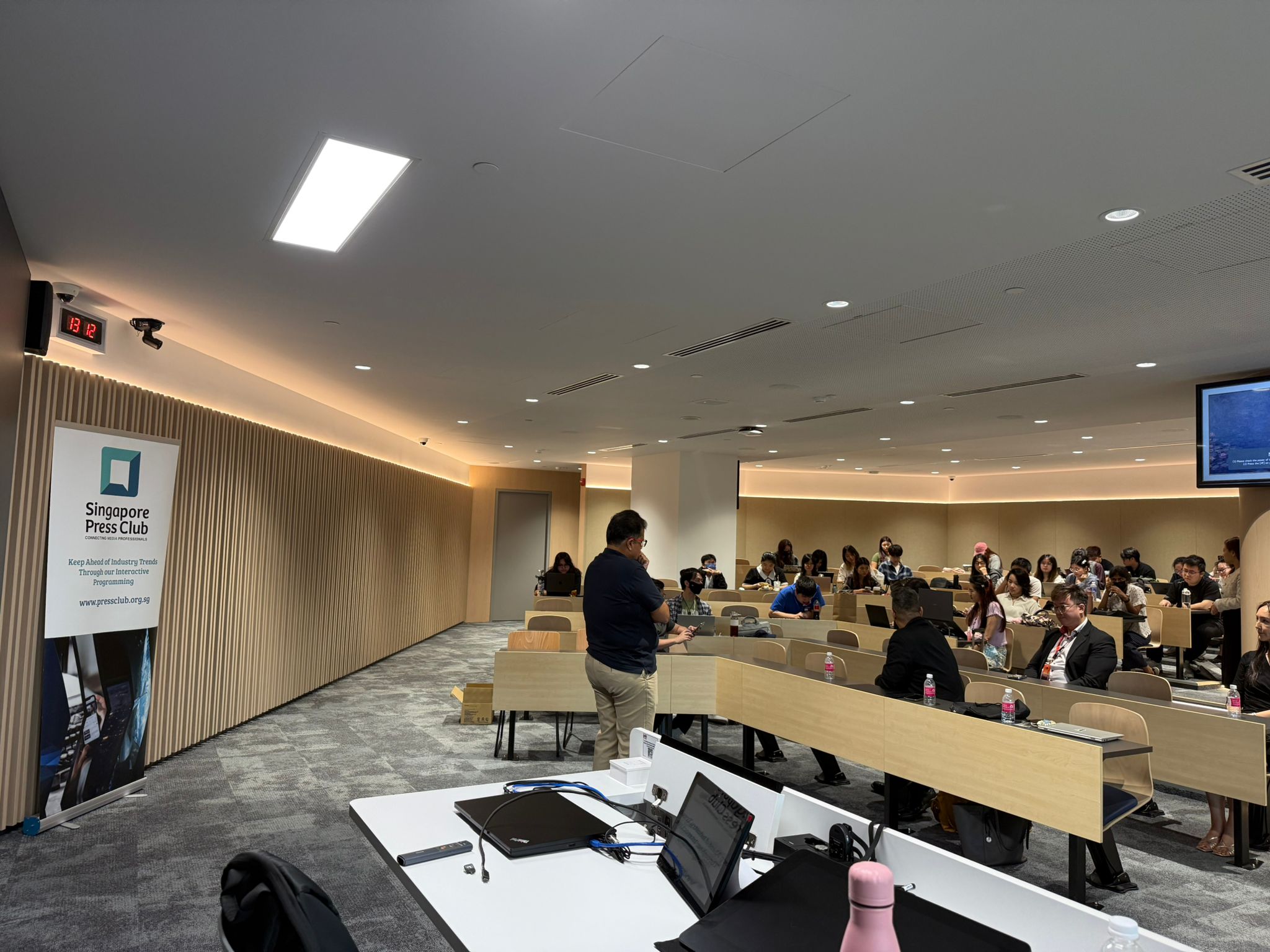 Well attended by 80 PSB Academy - Coventry University students and 25 Singapore Press Club members and guests who are curious about career or job opportunities in the age of AI from the perspective of media professionals. Presented by Amit Prakash, there was also inputs from Lau Joon-Nie, Singapore Press Club member. Students posted questions and it was a lively discussion. Thank you to PSB Academy  - Coventry University's lecturer Prof Florence Ng and the marketing team for their support in organising this event.